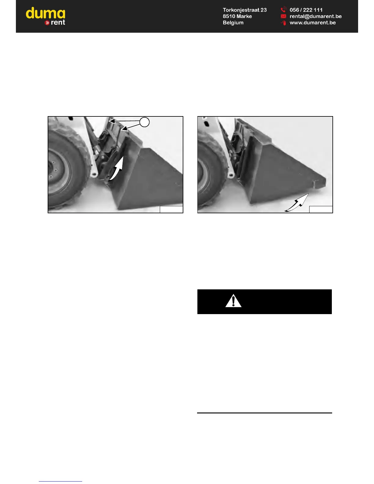 • Lower the lift arms and put the attachment flat on