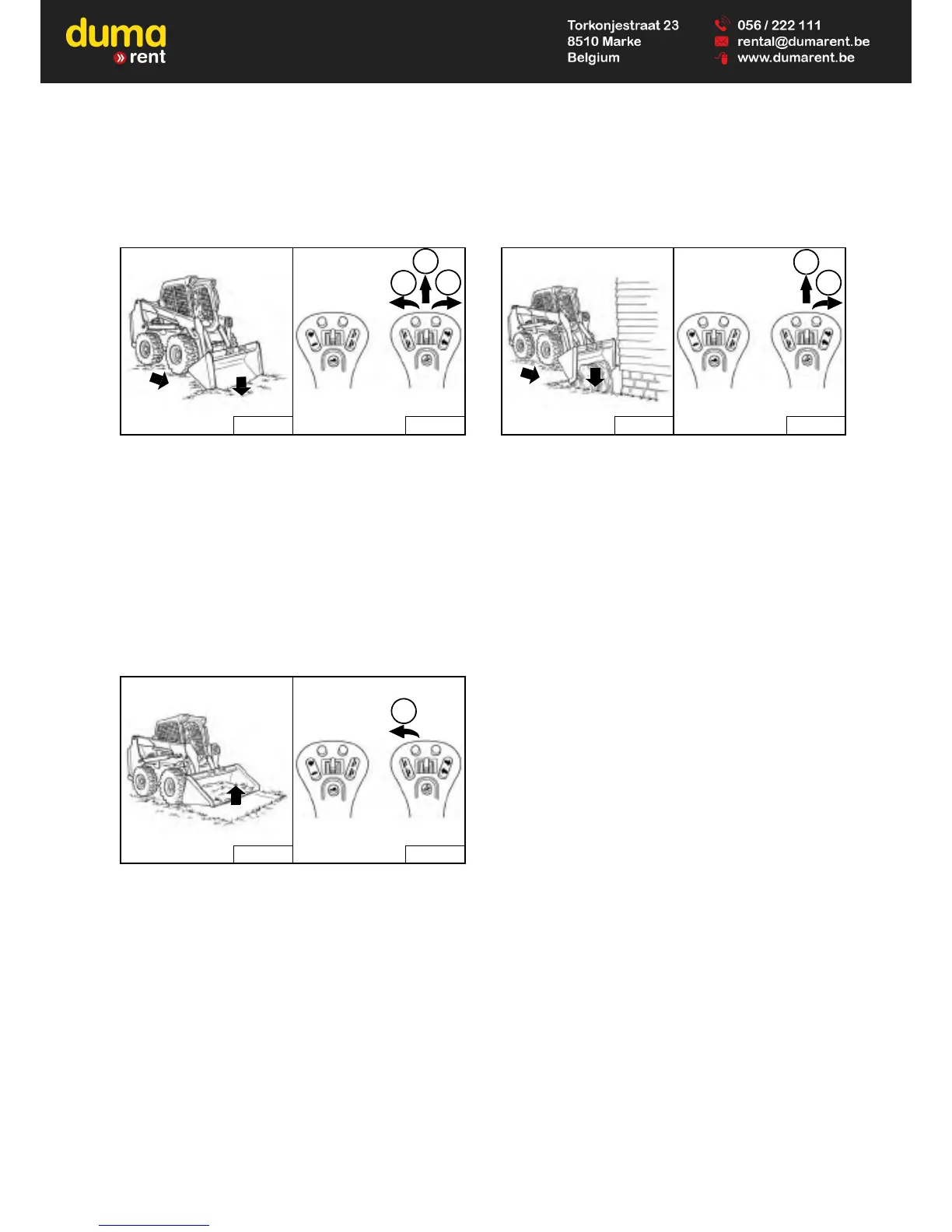 Drive forward slowly and continue to tilt the bucket down
