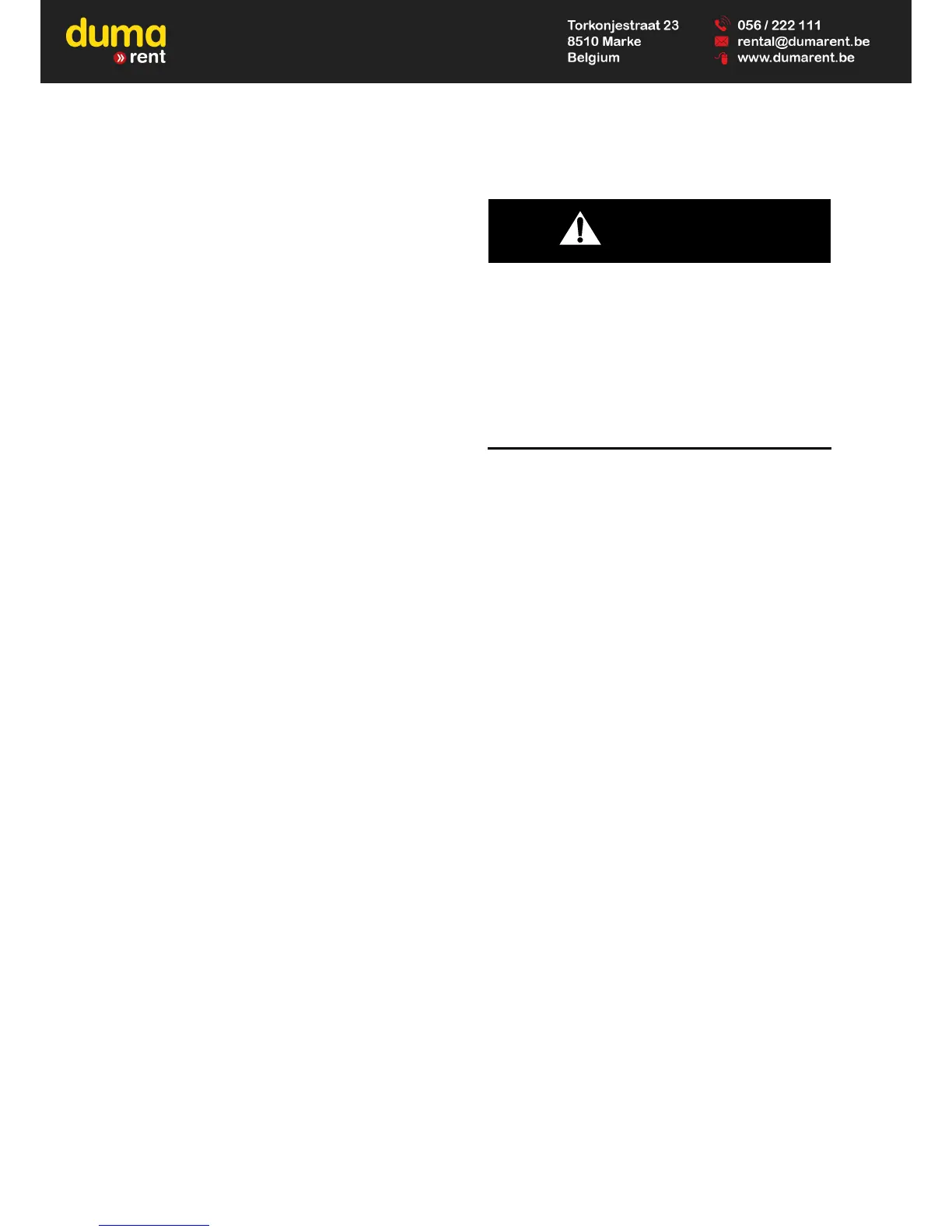 • Wheel Nuts – Perform every 10 hours or daily for the first 30 hours, then as scheduled. Check for loose wheel nuts