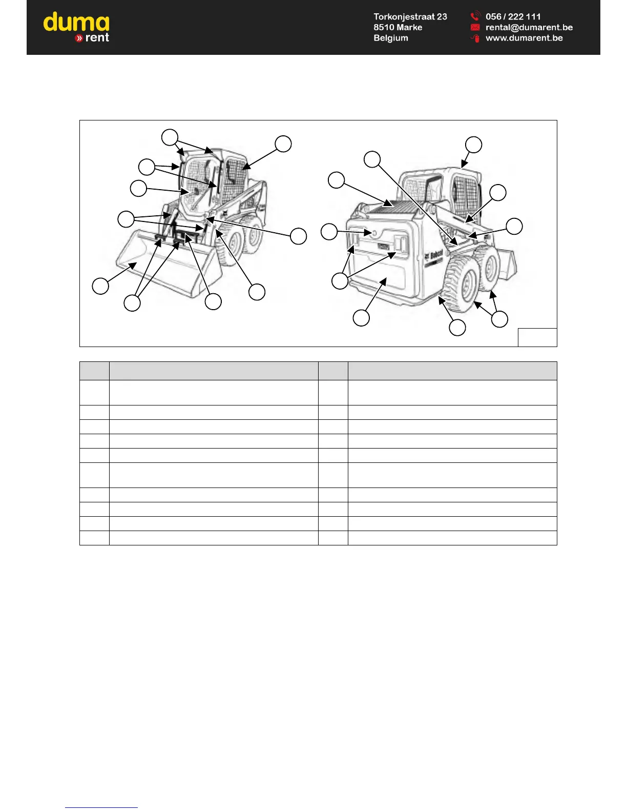 [C] Tyres – Standard tyres are shown. Several different tyre styles and sizes are available for the Bobcat loader.