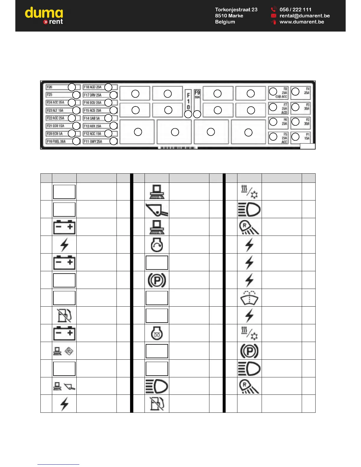 The table below is for earlier models with relays in positions 25 and 28. Fuse location and amperage ratings are