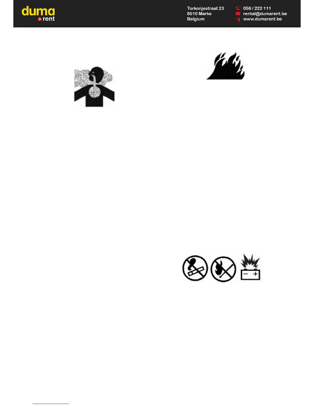 any open flames or sparks away from batteries. Do not
