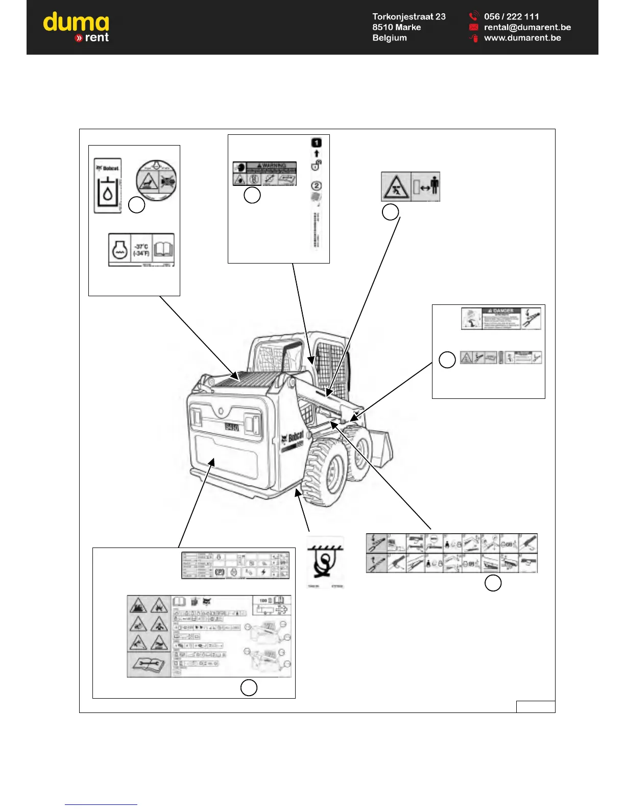 be sure they are in the correct locations. Machine signs are available from your Bobcat loader dealer.