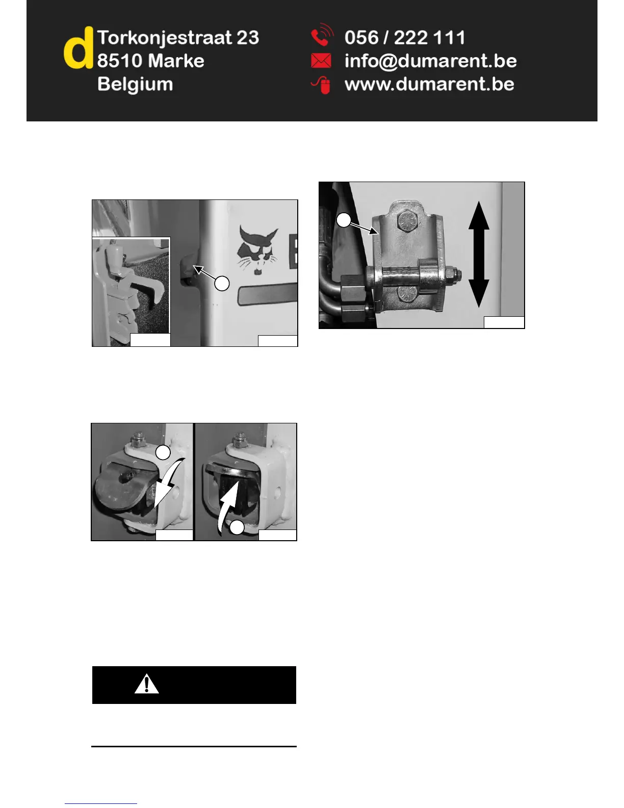 Close the rear door before operating the loader.