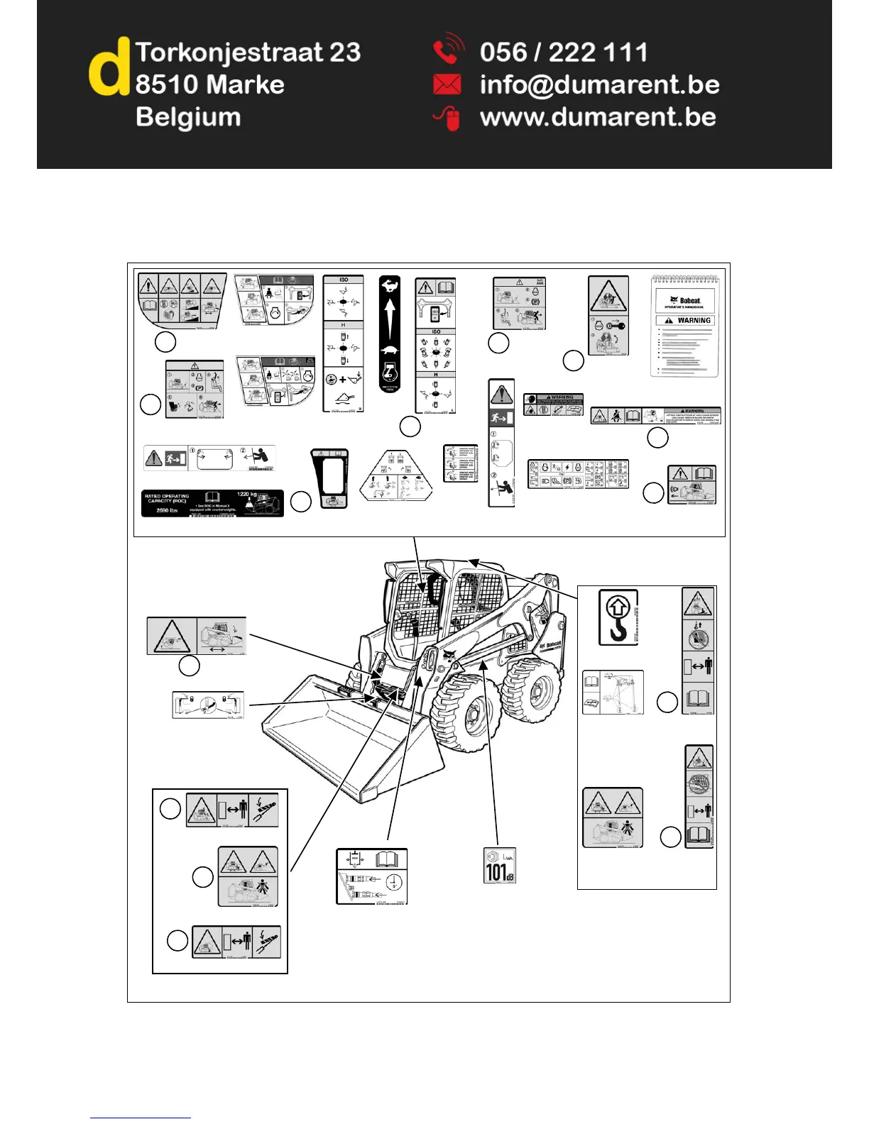 be sure they are in the correct locations. Machine signs are available from your Bobcat loader dealer.