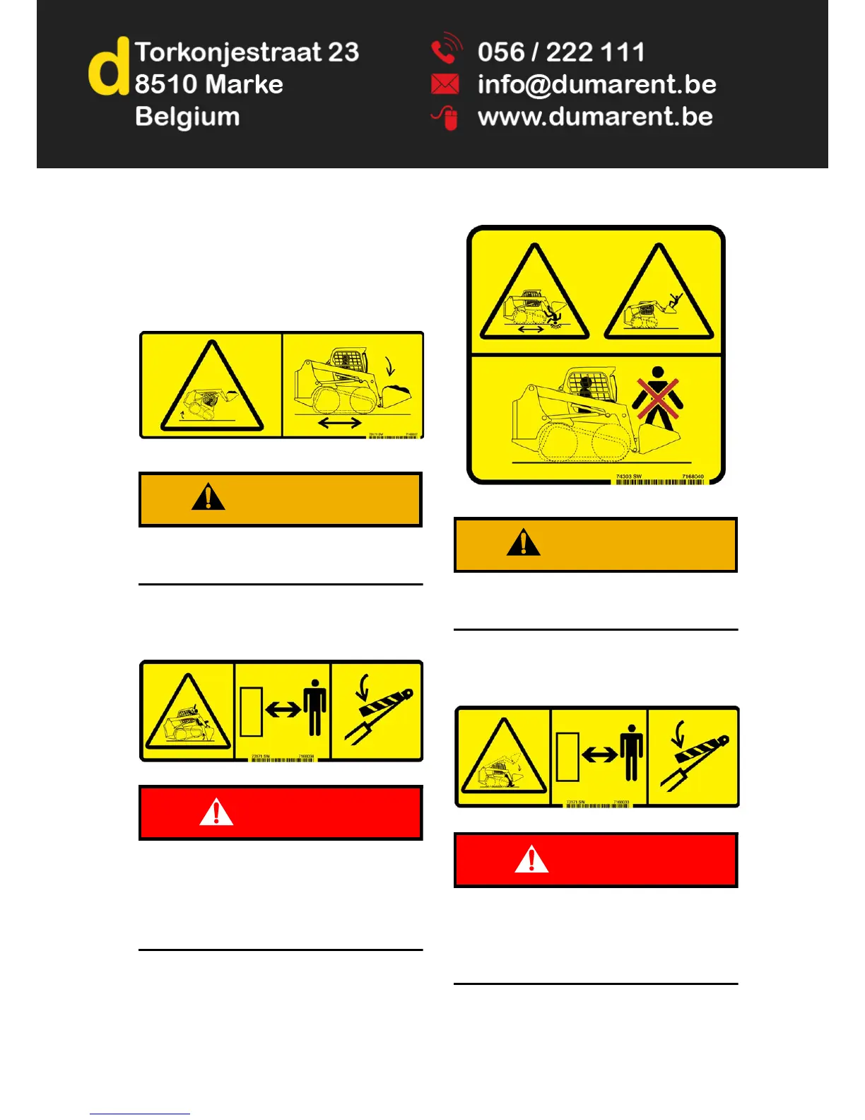 • Never use loader as a man lift or work platform.
