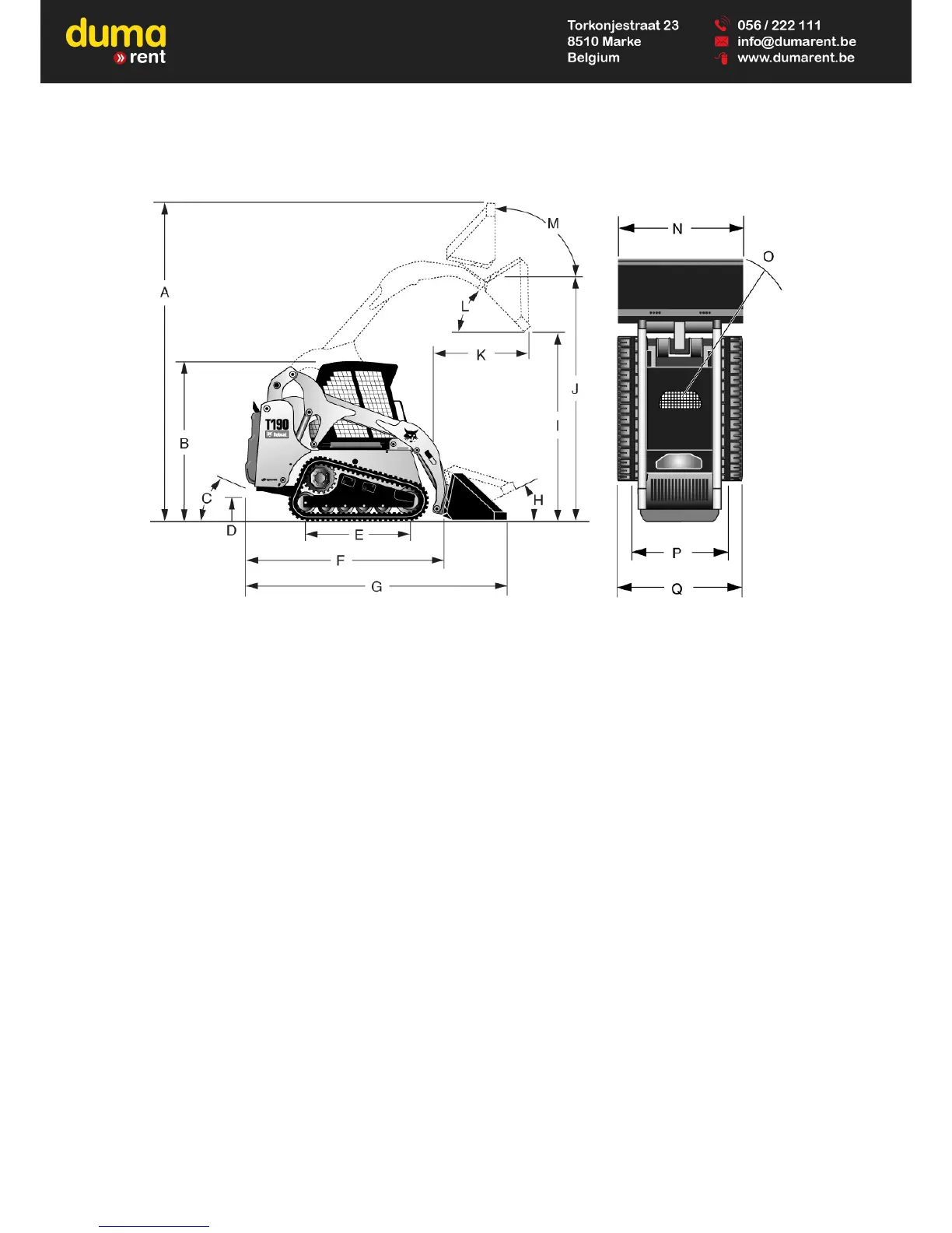 (O) Turning radius with standard bucket......................................... 2001 mm