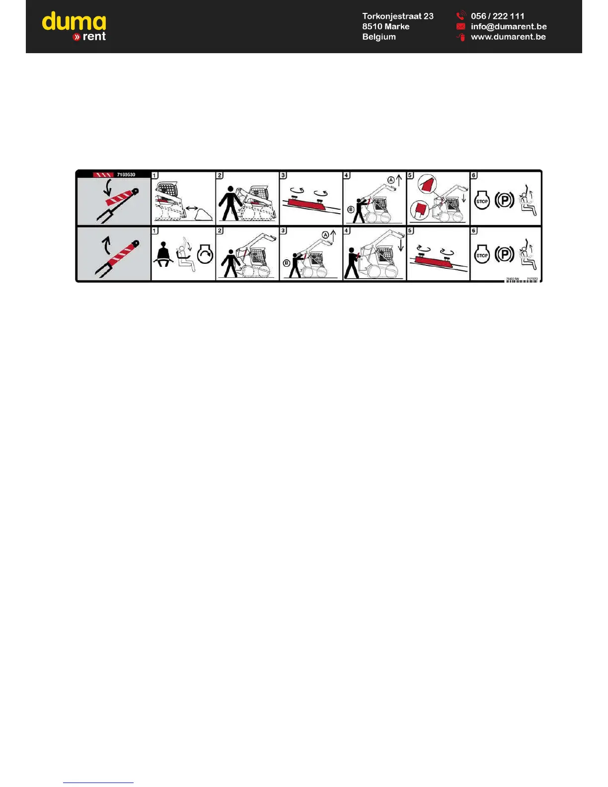 6. Stop the engine, engage the parking brake and raise the seat bar.