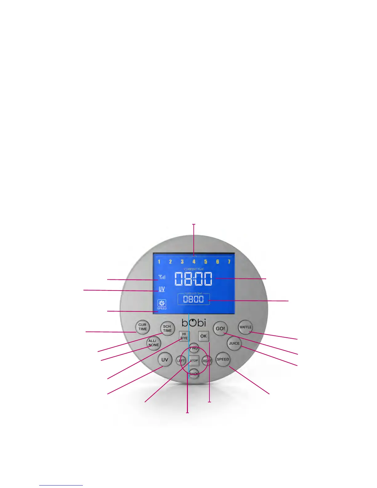 you to set bObi’s weekly cleaning schedule and to select her cleaning modes. It also