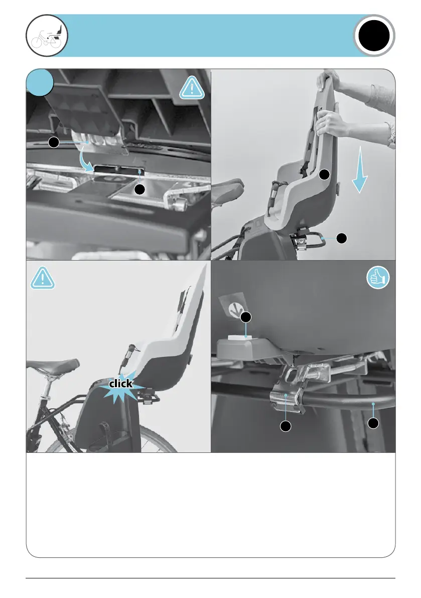 The child carrier will be properly locked to the rack attachment system after you hear a click on both sides, on both