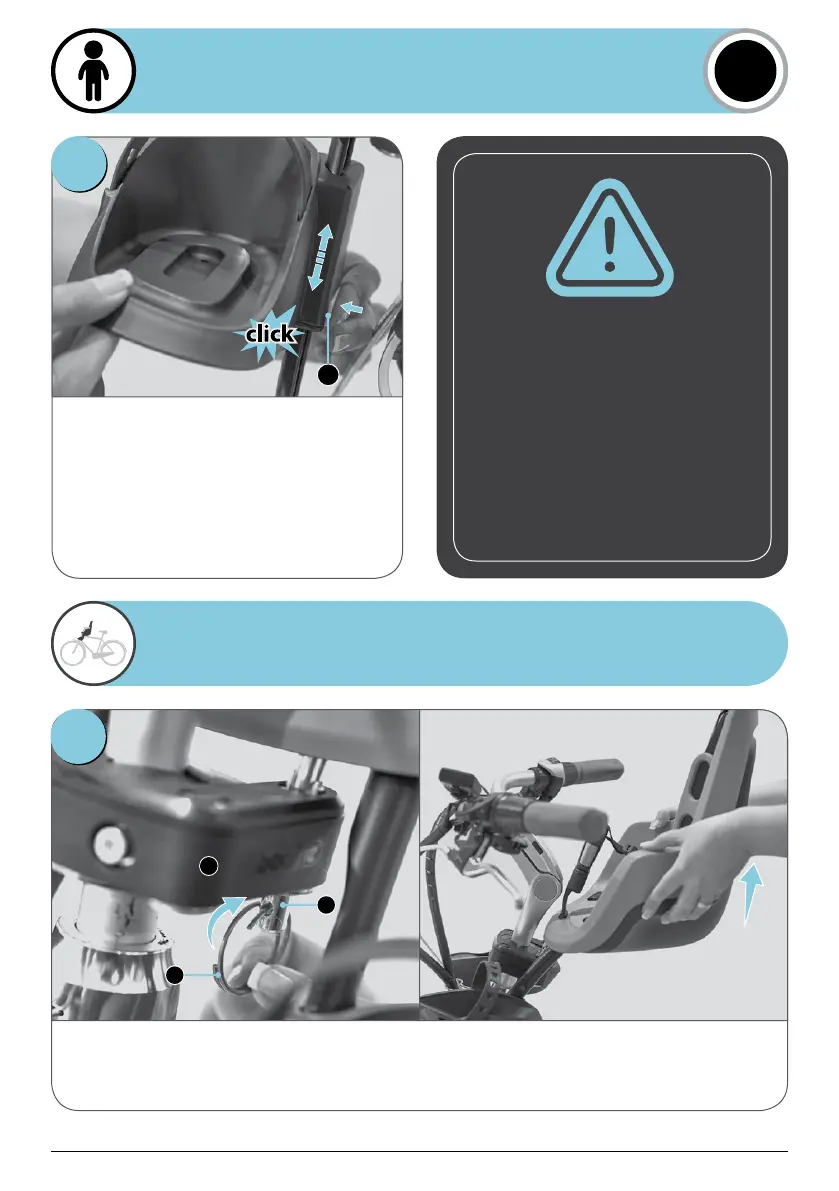To remove your child seat remove the split ring (E3) and pull the Carrier upwards and backwards to release it from the frame