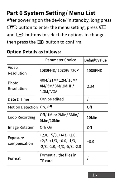 Part 6 System Setting/ Menu List