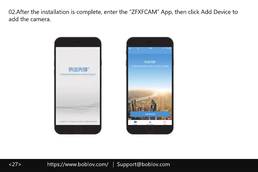 02.After the installation is complete, enter the "ZFXFCAM"App, then click Add Device to