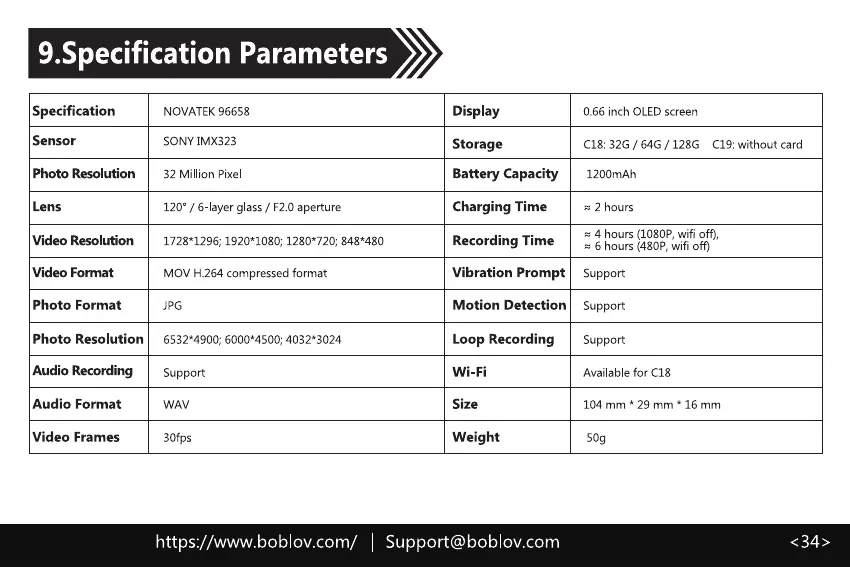 9.Specification Parameters