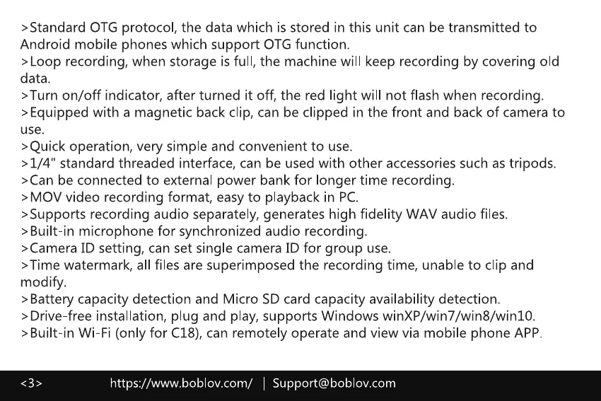 >Turn on/off indicator, after turned it off, the red light will not flash when recording.