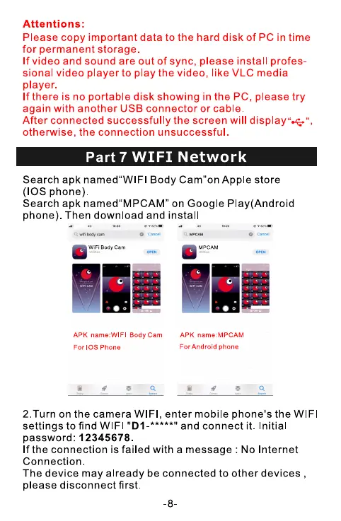 2 Turn on the camera WIFI, enter mobile phone's the WIFI