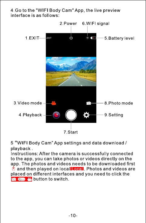 5 "WIFI Body Cam" App settings and data download /