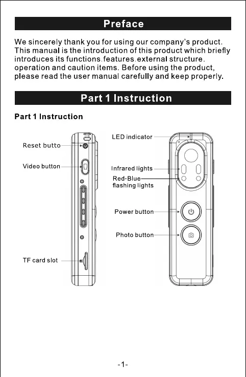 boblov D1 - Part 1 Device Instruction; Reset Button; Video Button; TF Card Slot