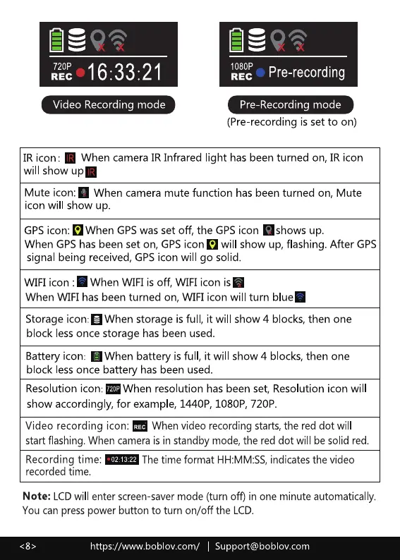 Note: LCDwill enter screen savermode (turn off) in one minute automatically.