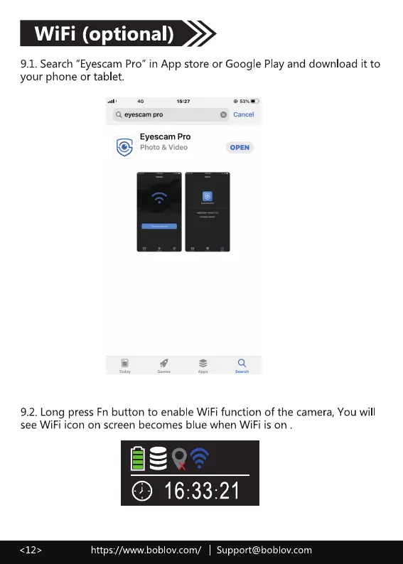 boblov F1 - WiFi (optional); App Download; Enable WiFi