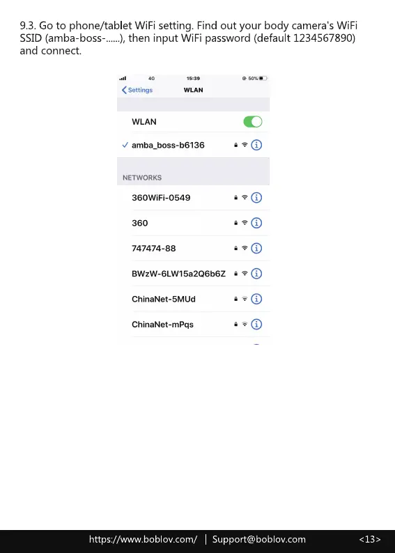 9.3. Go to phone/tablet WiFi setting. Find out your body camera's WiFi