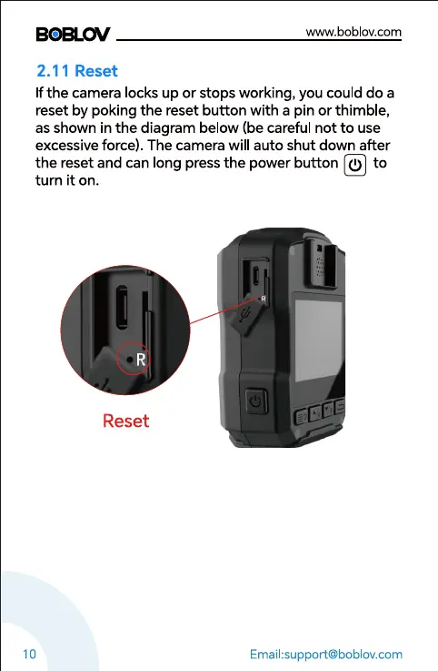 the reset and can long pressthe power button (I) to