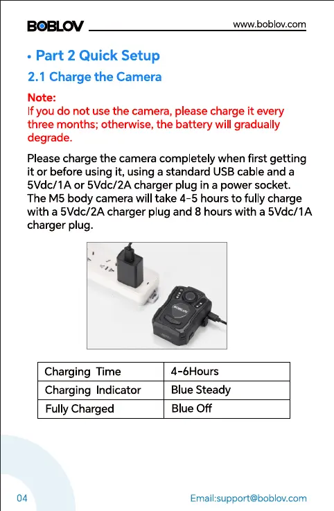 with a 5Vdc/2A charger plug and 8 hours with a 5Vdc/IA