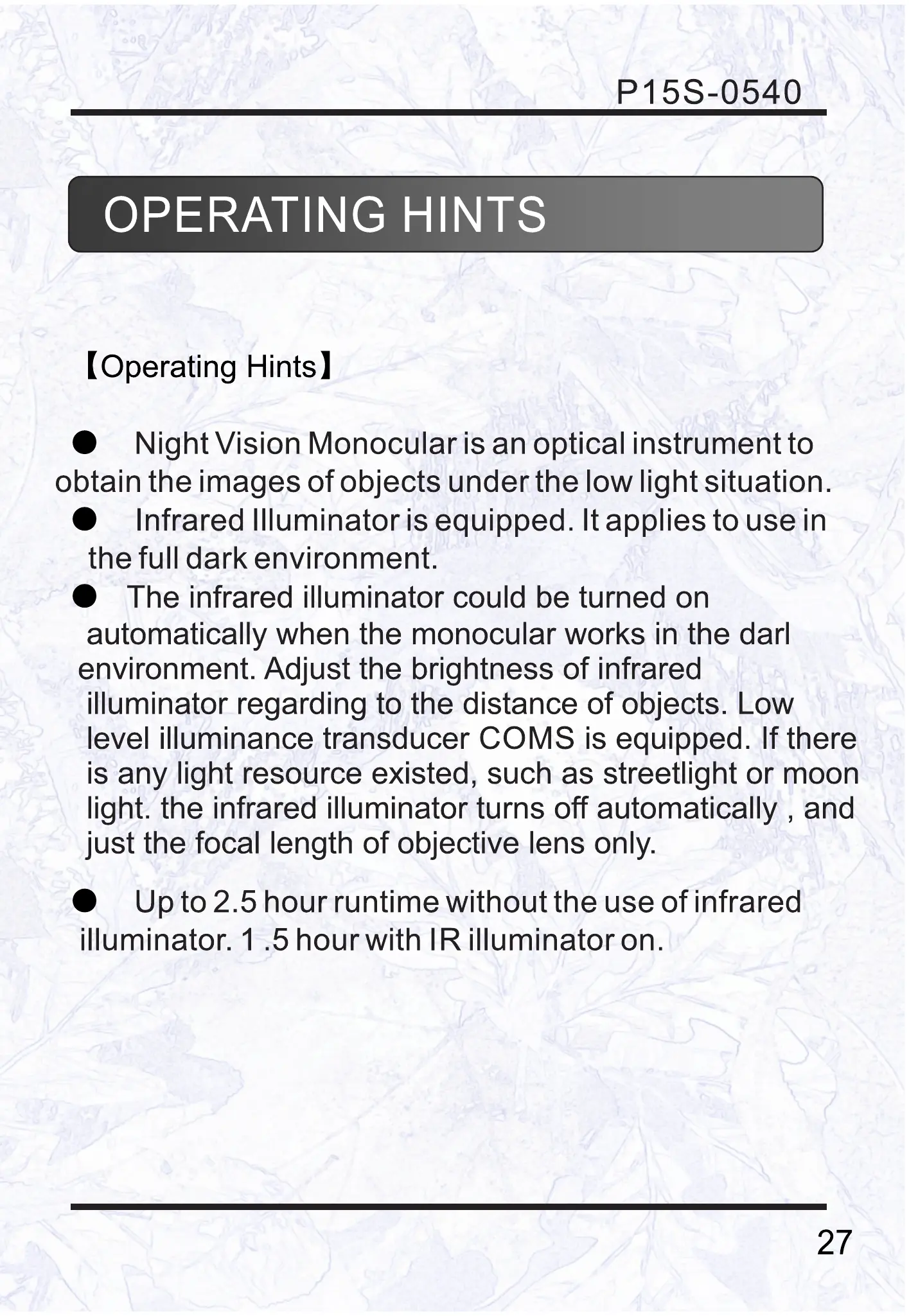 O Up to 2.5 hour runtime without the use of infrared