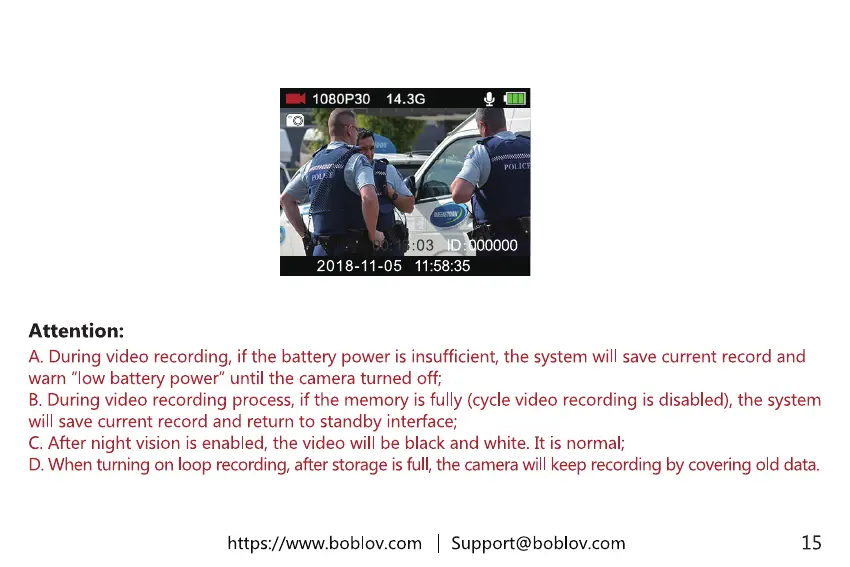 A. During video recording, if the battery power is insufficient, the system will save current record and