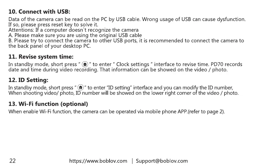 When enable Wi-Fi function, the camera can be operated via mobile phone APP.(refer to page 2).