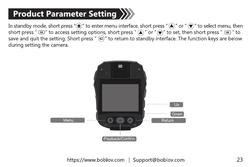 In standbymode,shortpress"@" to enter menuinterface,shortpress"@" or "S" to selectmenu,then