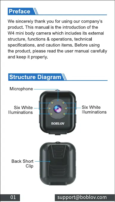 W4 mini body camera which includes its external