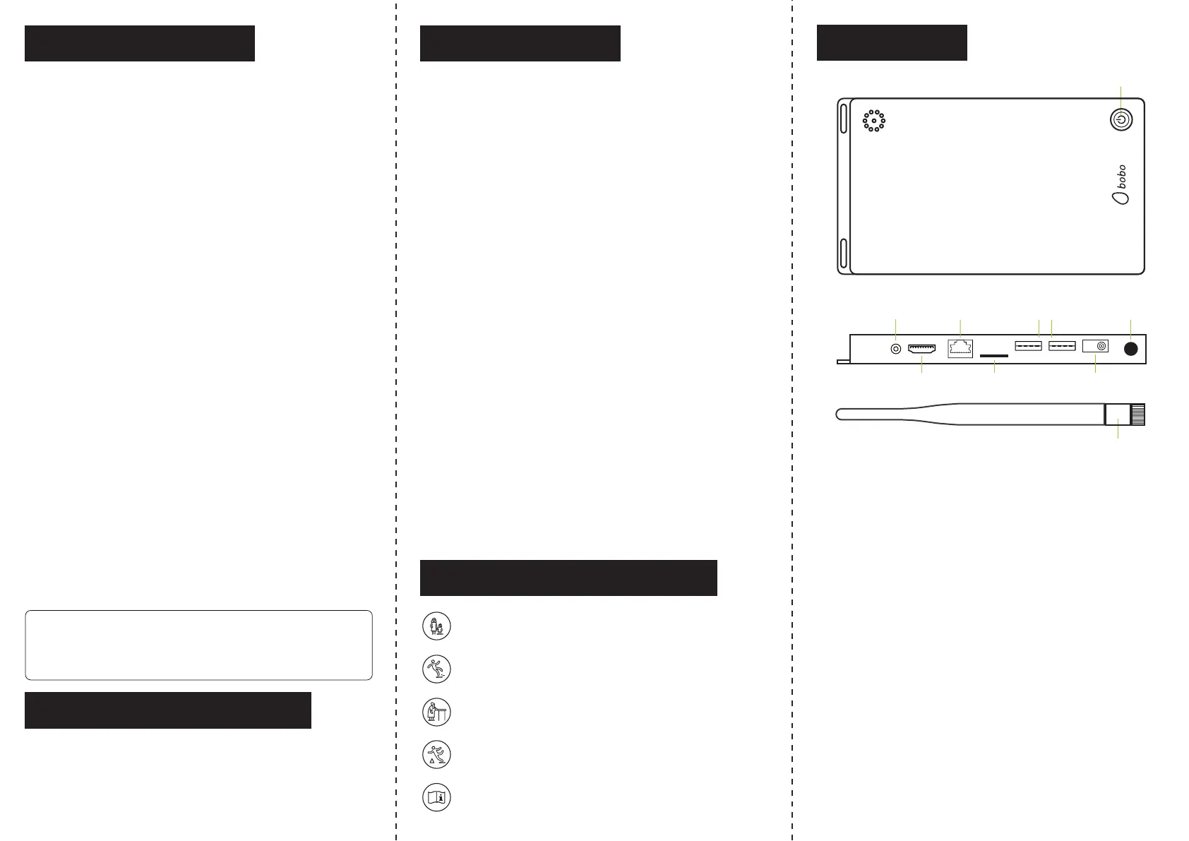 • Do not dismantle, disassemble, open or otherwise alter the bobo. There are no user