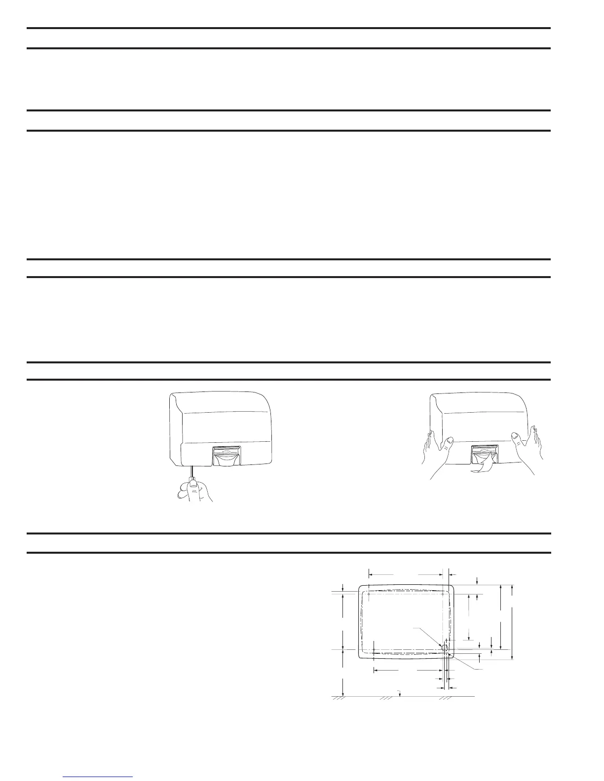 * Bobrick automatic hand dryers should be installed 15" (380mm) above any projection or horizontal surface which may interfere with