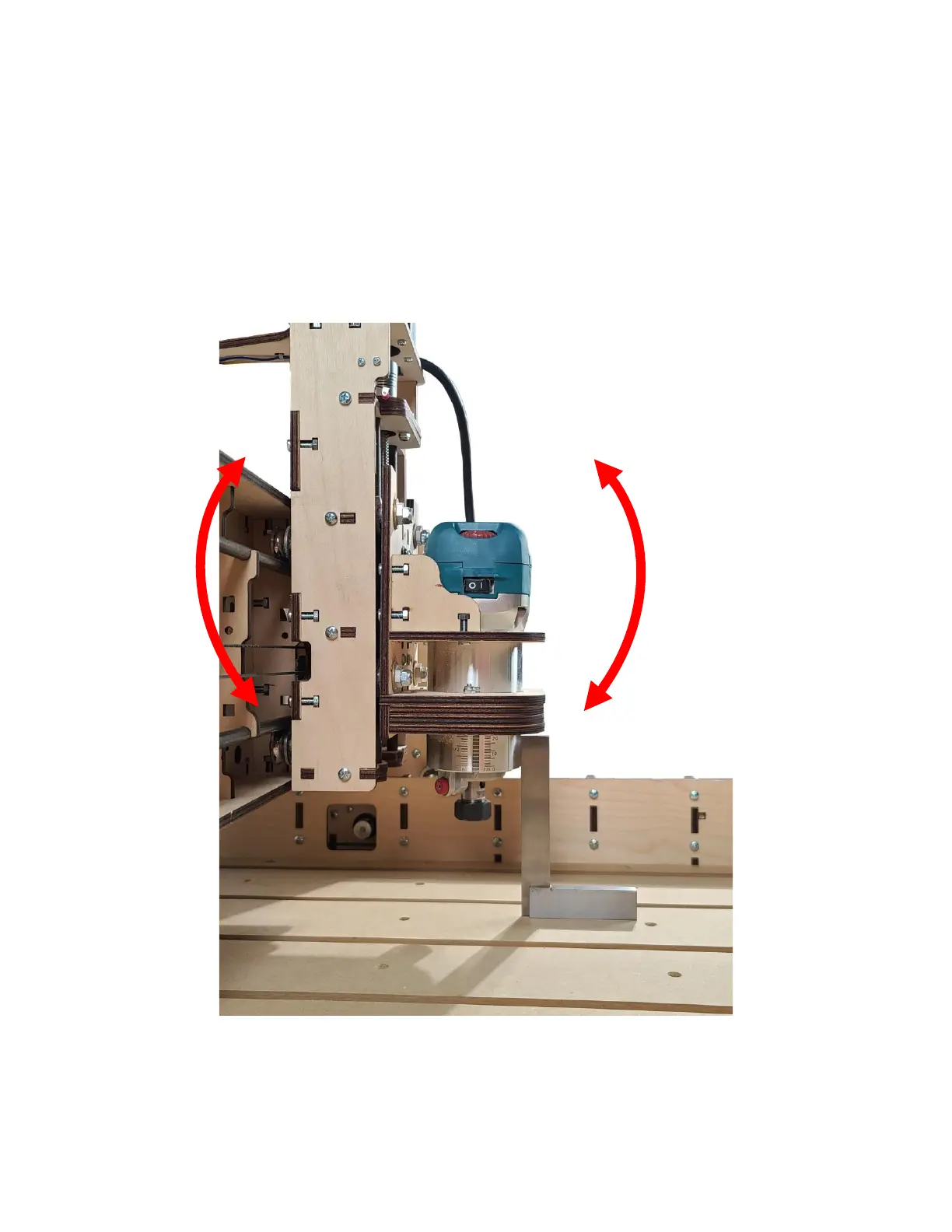 The Spindle (Router) can be trammed on the Y axis by placing shims behind