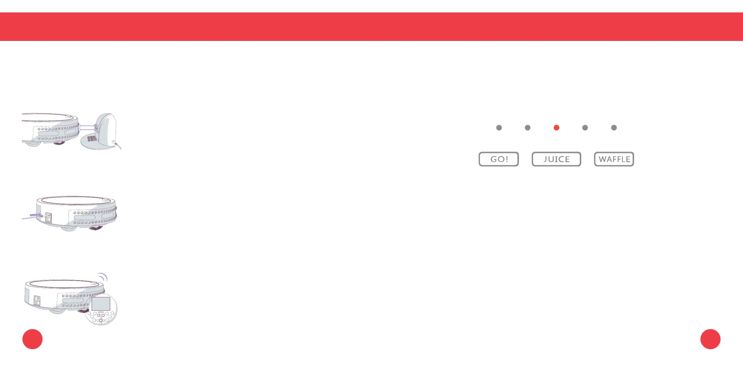 Plug the charging adapter directly into the inlet on bObi’s side.