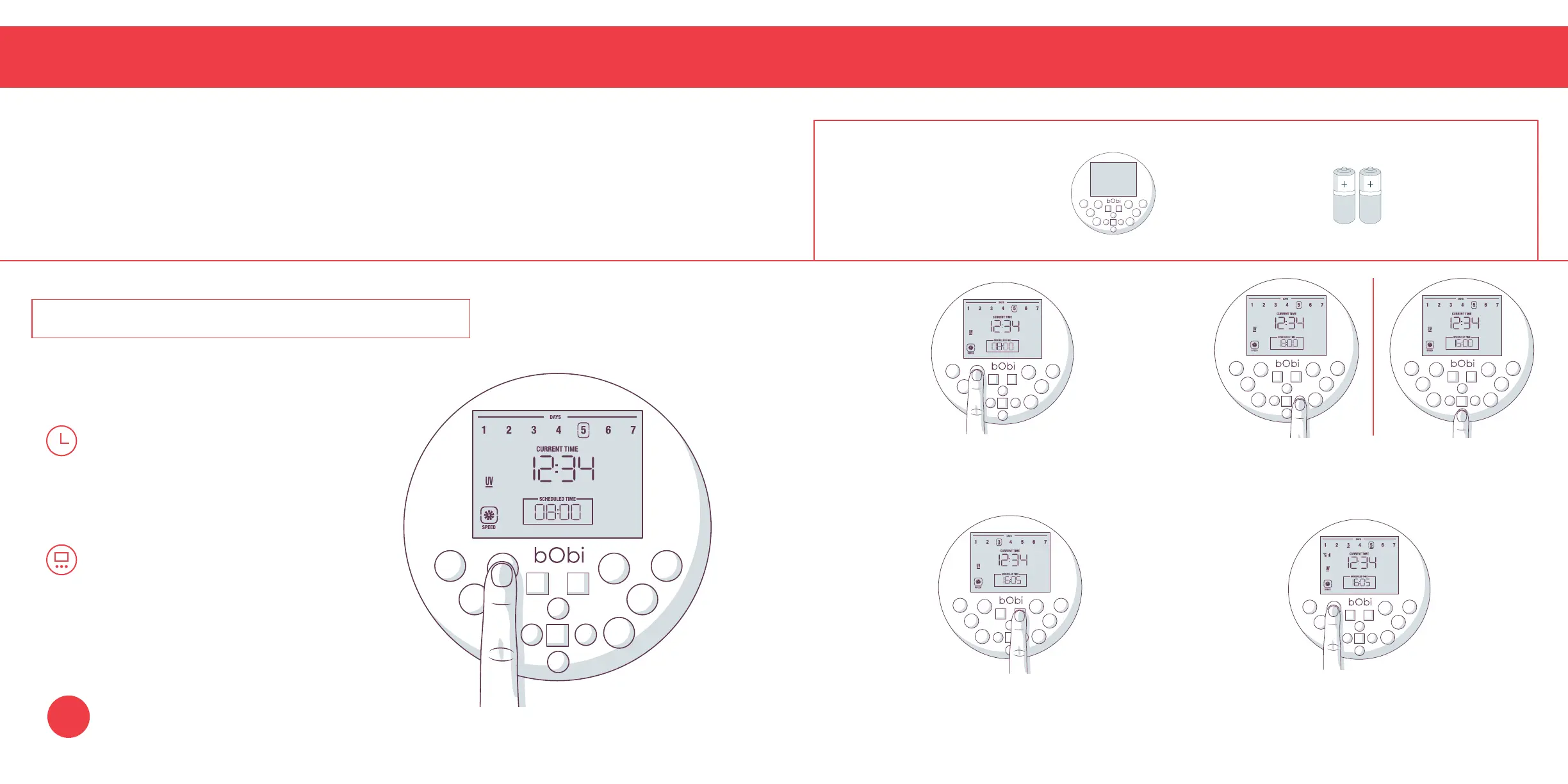 FullCommand™ remote. After setting the current time and day on bObi’s remote, you may set her