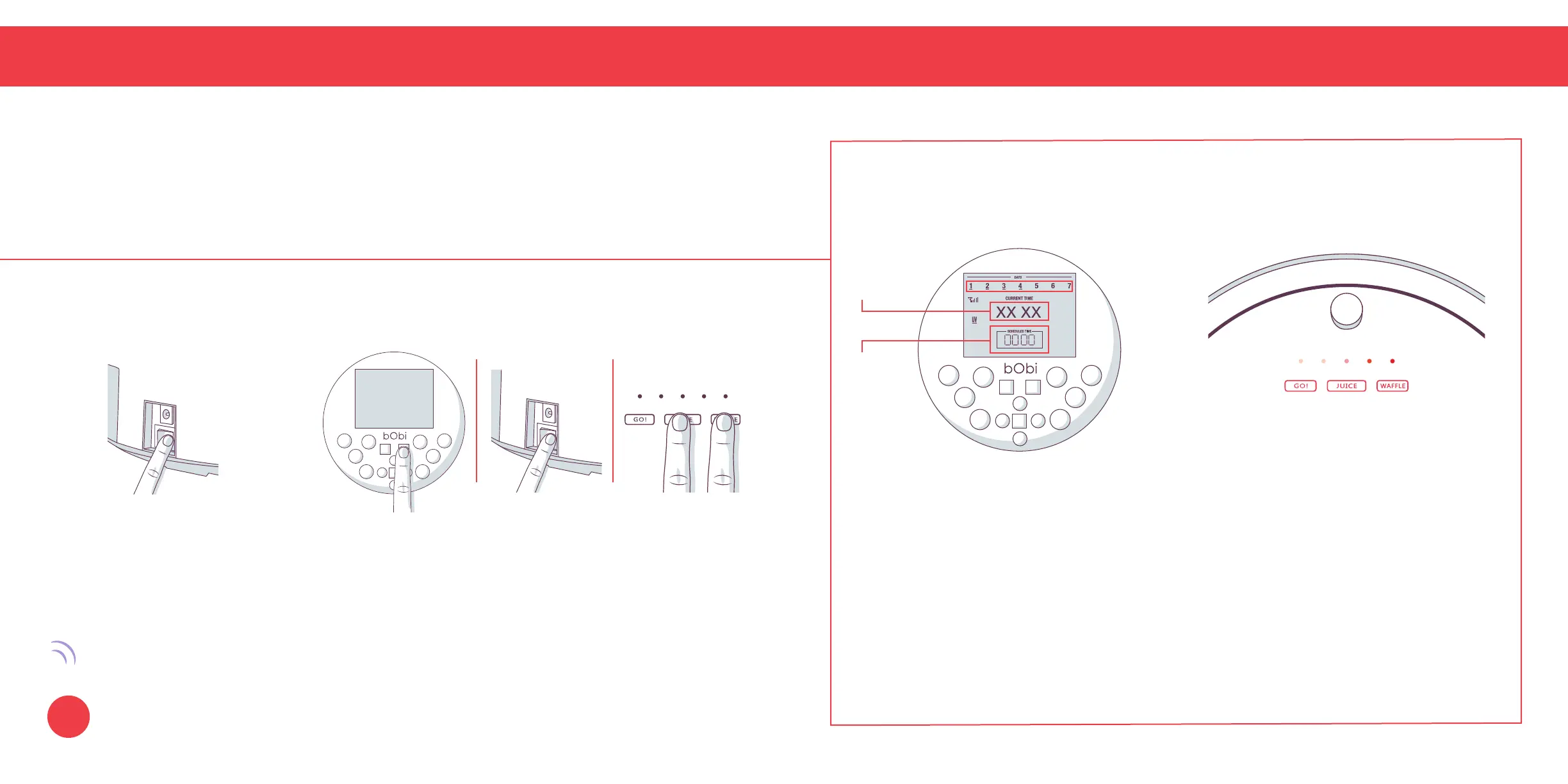 1. Flip bObi’s power switch OFF. 2. While holding down the OK button on bObi’s remote,