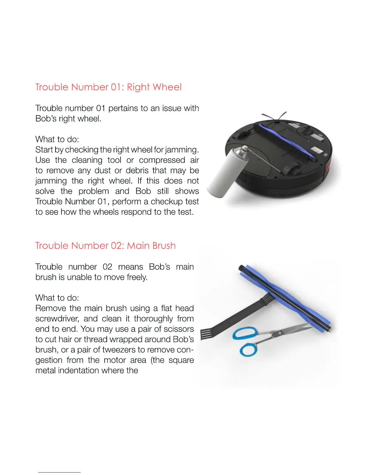 bObsweep PetHair - Trouble Number 01: Right Wheel; Trouble Number 02: Main Brush