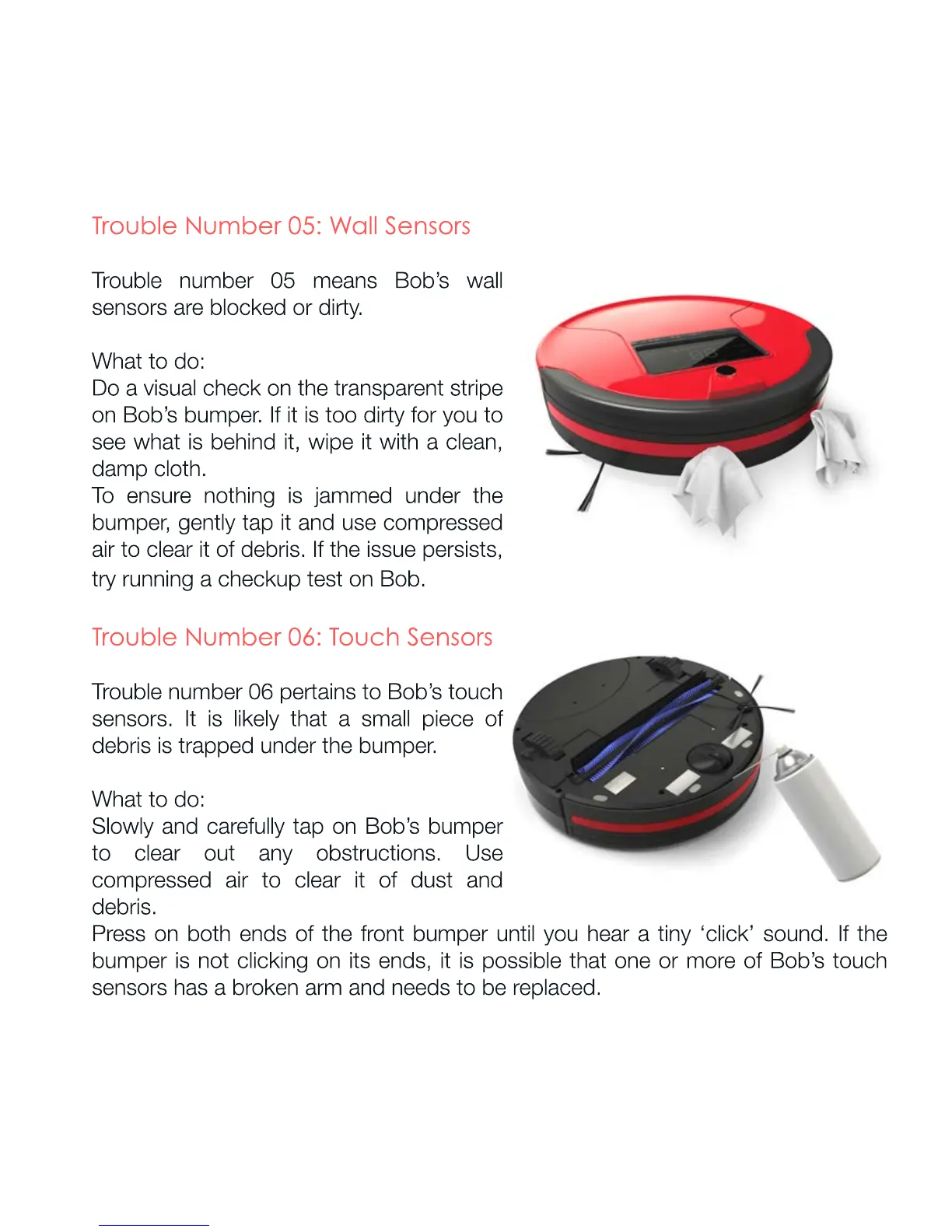 bObsweep PetHair - Trouble Number 05: Wall Sensors; Trouble Number 06: Tourch Sensors