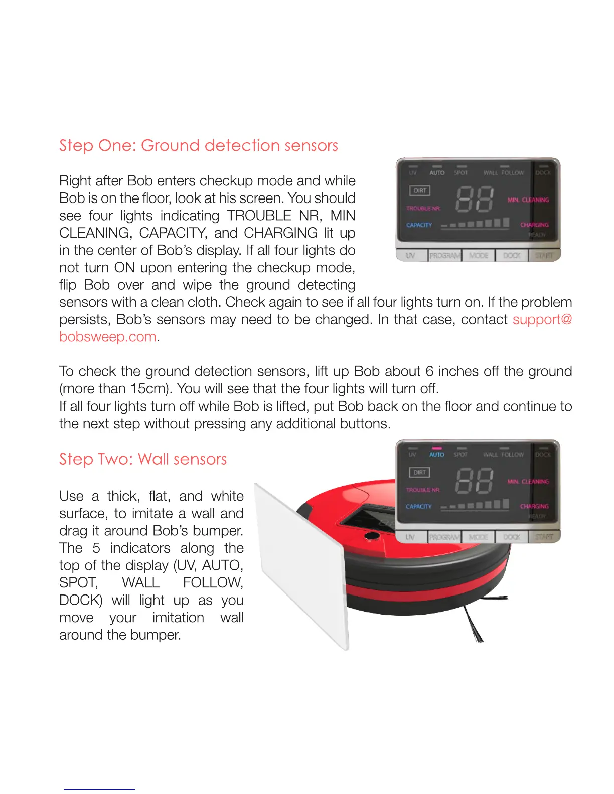 bObsweep PetHair - Ground Detection Sensor Test; Wall Sensor Test