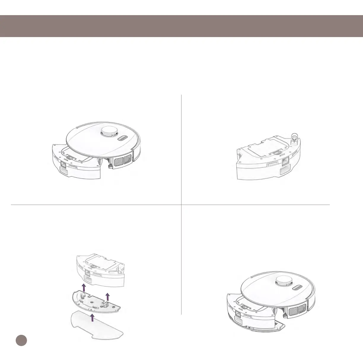 1. Retirer la poubelle. 2. Ouvrez la languette du réservoir et