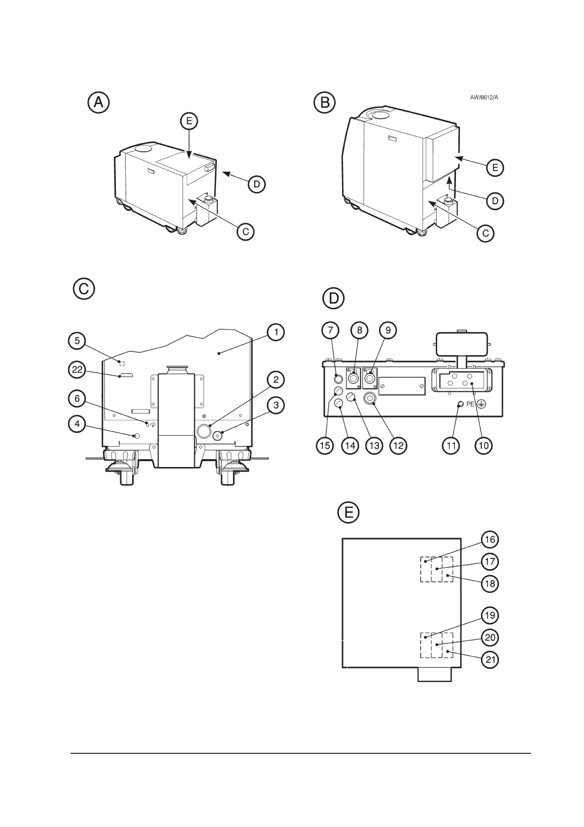 D, E Detail of Electrics box