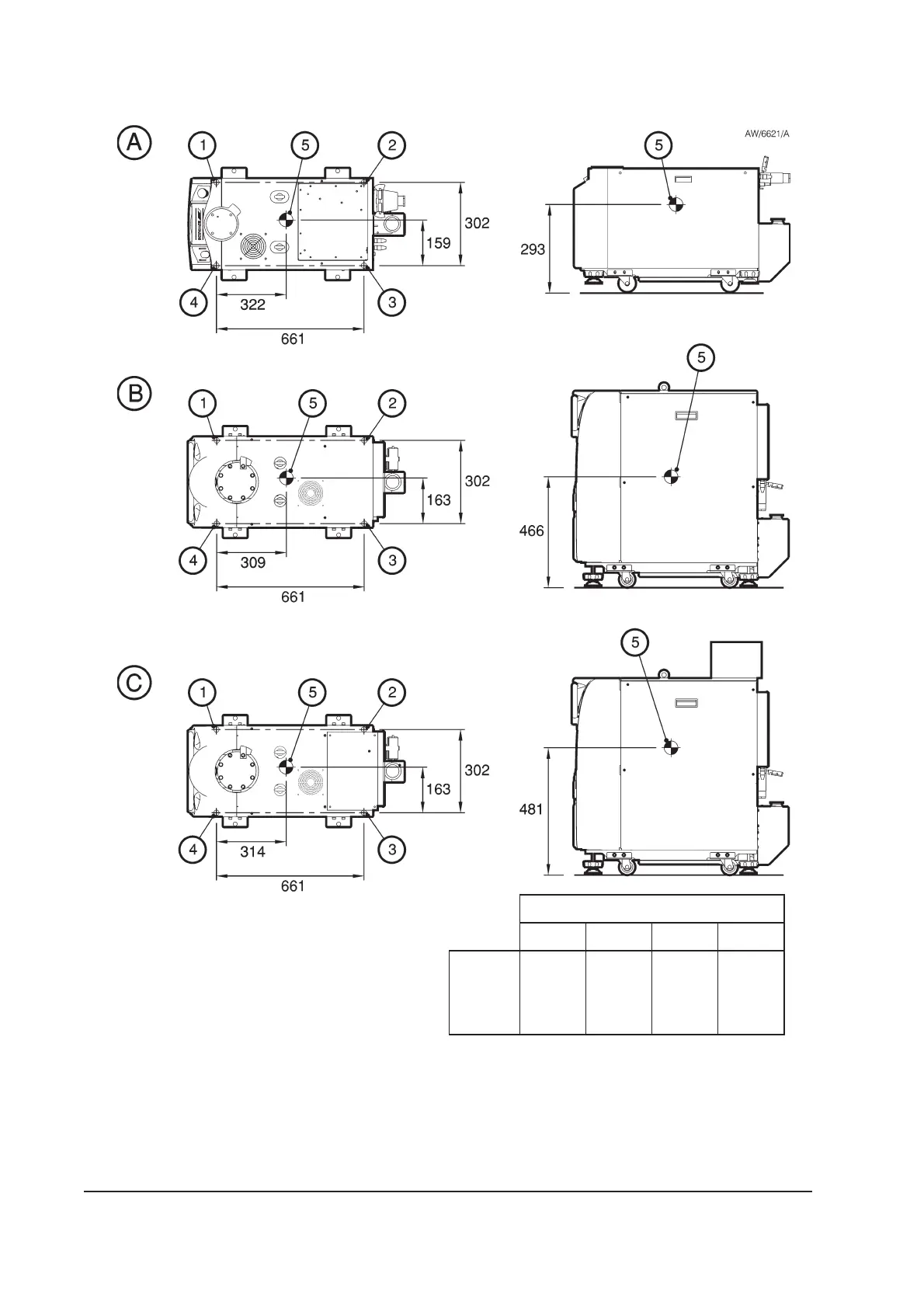 Figure 2-5 - Centres of mass dimensions (mm) and mass distribution