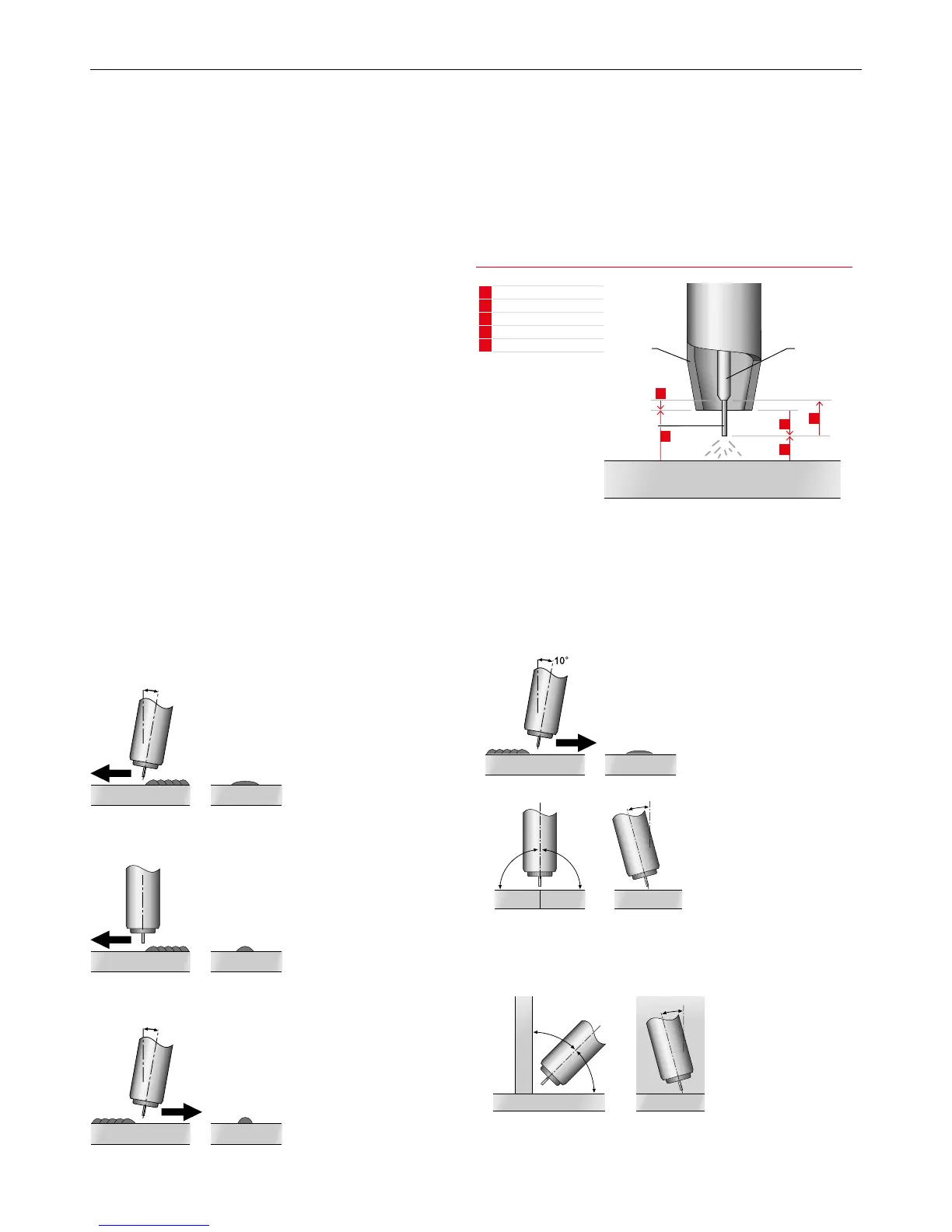 technique. The welding torch is tilted at an angle of 10° away from the