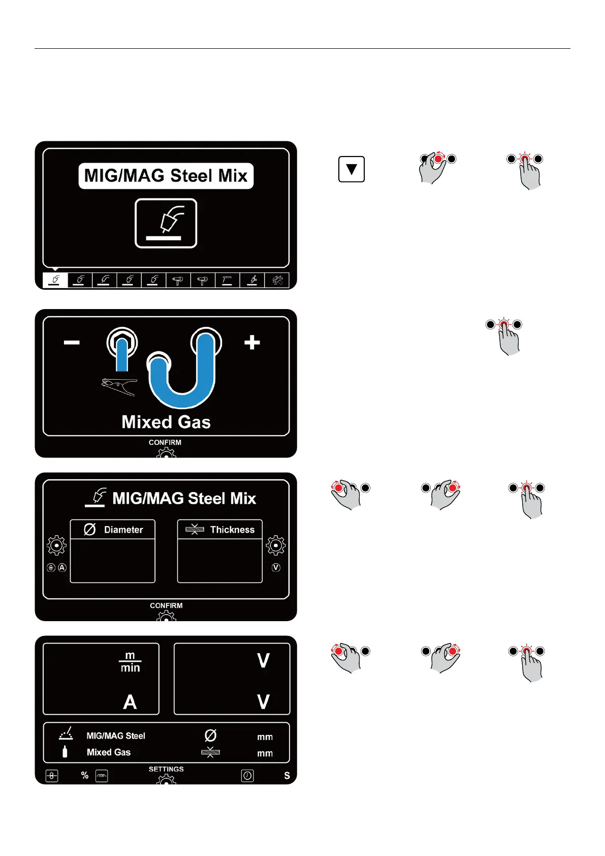 MIG/MAG Steel Mix, MAG Steel CO₂, Flux Cored, MIG/MAG Stainless Steel, MIG/MAG Manual.