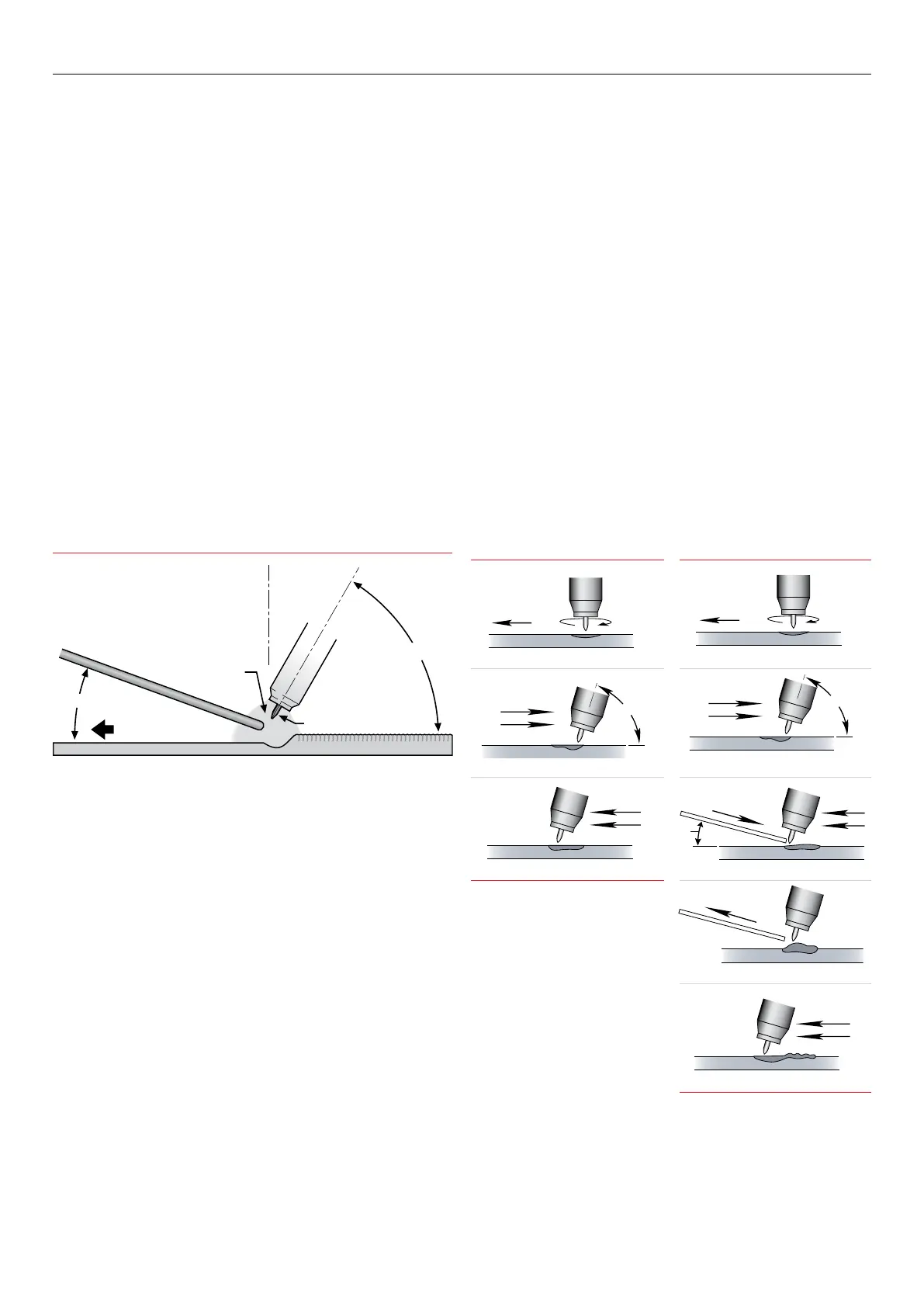 weld. The torch is held 60–75° from the metal surface. This is the same