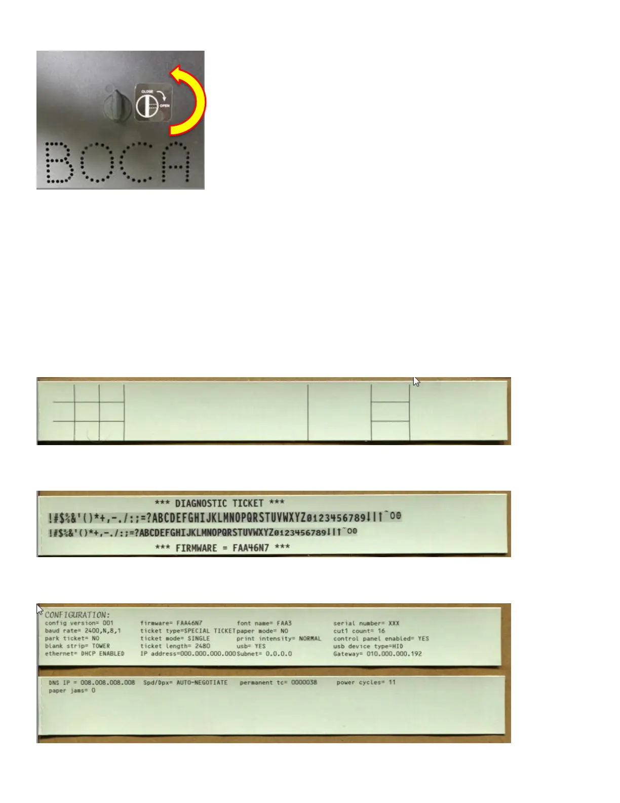 (3) CONFIGURATION Strip (by simultaneously pressing MENU and ON/OFF buttons with printer offline)