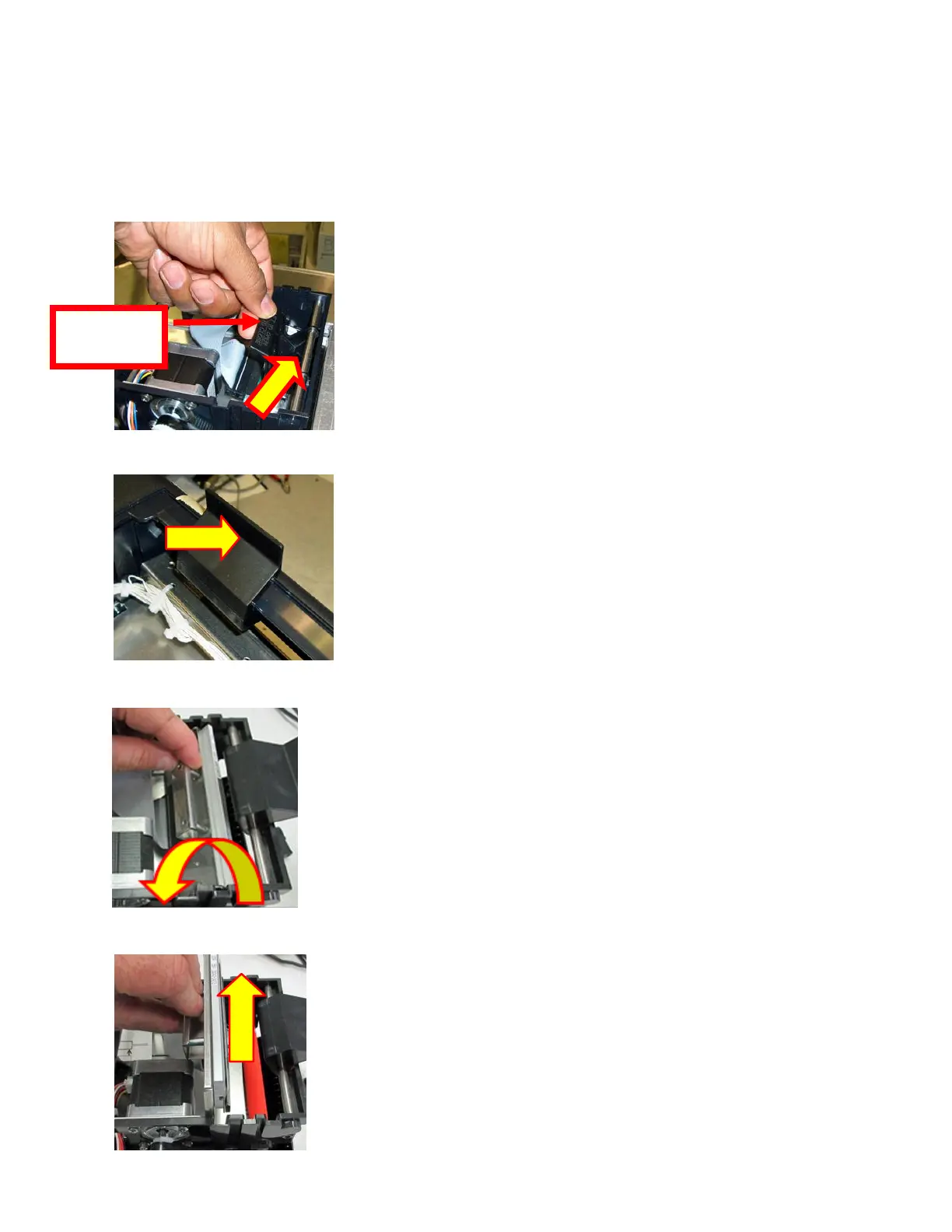 4. Flip the head back toward the rear of the printer. Denote what slot the print head was taken out of.