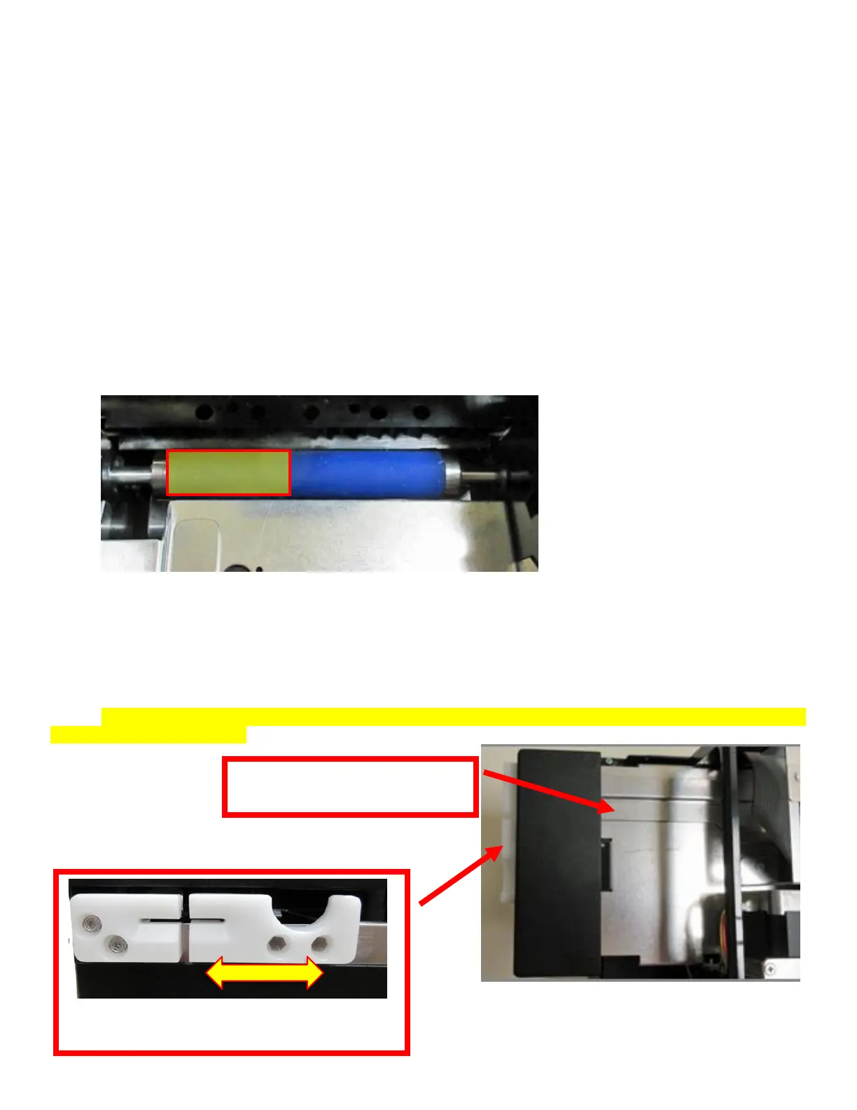 3. Clean only the part of the rubber roller where the flight strip makes contact with the platen. See yellow highlighted